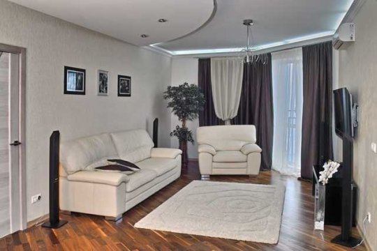 Для чего создаются интерьеры? Странный на первый взгляд вопрос. Для жизни, конечно! А дальше, как говорится, возможны варианты. Для кого-то жизнь – гиперактивное времяпрепровождение с возможностью иногда поспать, кто-то не может обойтись без профессионального домашнего кинотеатра, бильярда или аквариума, кому-то хочется воссоздать дома любимую историческую эпоху, но большинству из нас прежде всего нужна возможность расслабиться и отдохнуть. Вот с таким вариантом воплощения среднестатистической тяги к комфорту и отдыху мы имеем дело. Первоначальным пожеланием заказчика был минимализм в его сухом, «мужском» варианте – минимум мебели, максимум пространства, прямые линии. Но минимализм в неразбавленном виде не способствует созданию расслабленной обстановки, скорее – наоборот. Поэтому было решено несколько смягчить первоначальный замысел, сделав его более «живым». Но обо всем по порядку. Во-первых, перепланировка. 66 квадратных метров – не самый маленький метраж для новой «двушки», но и его стандартная планировка способна загнать в «малогабаритный» режим. Средство от этого известно – создать общее гостевое пространство, в данном случае объединив прихожую, гостиную и кухню. А поскольку между собой эти функциональные территории не всегда «дружат», главный секрет заключается в умелом зонировании. Основа зонирования – перегородка между кухней и прихожей. Изолируя кухню и прихожую друг от друга, она, тем не менее, оставляет их полуоткрытыми со стороны гостиной и, следовательно, не мешает объемному восприятию общего пространства. Но кухонную плиту и входную дверь при этом с дивана в гостиной не видно. Во-вторых, декоративные решения, которые работают над увеличением пространства в унисон с архитектурными. Это и светлая цветовая гамма, и контраст глянцевых и матовых поверхностей и различных фактур, и зеркальные двери шкафа-купе в прихожей, углубляющие пространство, и линия потолка, и подсветка гостиной и коридора, и минималистский кухонный гарнитур. Что до мебели в гостиной, то она вполне может быть большой и удобной, располагающей к отдыху. «Одомашнивание» интерьера в хорошем смысле этого слова происходит при помощи «природной» темы – искусственного камня перегородки и пескоструйных растений на стекле, теплых «растительных» фасадов кухни, паркетной ореховой доски, а также благодаря уютным коврам в гостиной и прихожей, выбранных по принципу контраста. Спальня же преподносит сюрприз. Имея все тот же светлый фон, она в буквальном смысле блестит, мерцает и переливается серебром по темным обоям, натяжному потолку, фасаду комода, и даже на подушках – характерный принт. Добавьте сюда оригинально устроенный балдахин и получите в довесок к расслабленной обстановке гостиной изрядную долю романтики и торжественности, превращающей место для сна в некое ритуальное помещение. В результате мы имеем квартиру-студию, отвечающую всем современным функциональным и эстетическим требованиям, способную дать то, что ценится в современной жизни больше всего – настоящее домашнее спокойствие и уют.